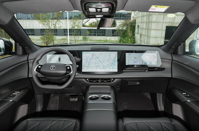 长安第四代CS75 PLUS在内饰方面,现代感有着明显的提升,方向盘采用两幅式设计,三块液晶屏幕也是较为显眼,包括全液晶仪表,中控屏幕,副驾驶屏幕,座椅经过菱形格处理后,提升了质感。